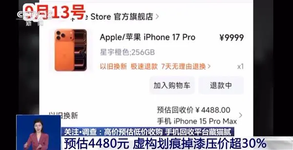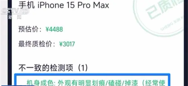 今年10月,安先生通过某购物平台以旧换新时,平台对其旧手机初始评估价为4488元。但在寄出手机后,平台以"明显磕碰、划痕和掉漆"为由,单方面将回收价下调至3017元。安先生核查平台提供的检测报告图片后,未发现价值1471元的外观损伤依据。