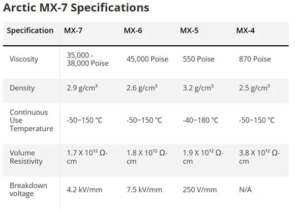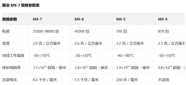 MX-7的核心技术改进集中在三个方面:低附着力设计便于均匀涂抹,高粘度特性防止使用过程中溢流,增强的内聚力确保与散热器长期紧密贴合。官方未公开具体成分,但公布了多项关键参数,包括粘度35000-38000 Poise(较上代降低22%)、密度2.9克/立方厘米(提升12%)等。