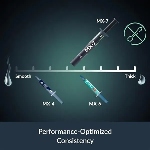 作为Arctic MX系列的第七代产品,MX-7延续了该品牌在导热硅脂领域的技术积累。MX系列自2012年推出以来,凭借稳定的性能表现成为DIY装机市场的常用散热解决方案。此次升级着重优化了材料物理特性,而非单纯追求导热系数的提升。